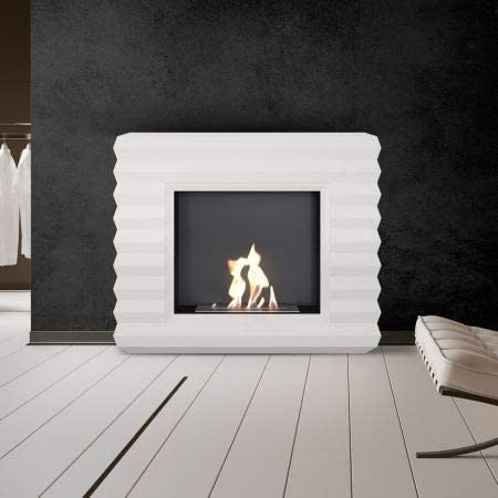 Bioethanol Kamin Bio / Standkamin Pinus im wellenförmigen Design eines Tannenzapfens inkl. MDF-Wandverkleidung weiß | TÜV geprüft | PINUS/TUV Genießen Sie mit dem modernen Ethanolkamin Pinus romantische Stunden am offenen Feuer und werten Ihren Wohnraum gleichzeitig auf. Der Kaminumbau ist aus MDF gearbeitet und in einem freundlichen Weiß gehalten. Er wirkt sehr modisch mit seinen horizontalen-zapfenartigen Einkerbungen. Durch seinen auffälligen Look wird der Pinus garantiert ein Highlight in Ihrem Wohnbereich. Die Bedienung des Pinus ist denkbar einfach: Ethanol in die dafür vorgesehene Brennkammer einfüllen, anzünden und fertig! Dabei benötigen Sie für die Installation nicht einmal einen Abzug, somit kann der freistehende Kamin fast überall aufgestellt werden. Dank des mitgelieferten Handgriffes regulieren Sie die Flammen und können diese damit auch löschen. Ein weiterer Vorteil des Kamins ist der geringe Platzbedarf, zudem benötigen Sie kein großes Holzlager. Rundum ist die Verwendung eines Biokamins wesentlich einfacher als bei einem klassischen Holzofen. Produktmerkmale des Pinus Biokamins: Korpus: MDF, Weiß Biokamineinsatz: Stahl, schwarz lackiert Flammenlöscher / Handgriff Abmaße Biokamin Höhe x Breite x Tiefe: 960 x 1020 x 260 mm TÜV geprüfte Sicherheitsbrennbox Edelstahl gebürstet und regulierbar Abmaße Kraftstoffbehälter Höhe x Breite x Tiefe: 52 x 411 x 111 mm Brennbox 1,6 Liter Ethanol (Einfüllvolumen abzgl. Keramikschwamm 0,75 Liter) Farbflächen pulverbeschichtet Designfeuer / Dekokamin / Standkamin Länge der Feuerlinie: 350 mm Heizleistung: ca. 2,0 kW genehmigungsfrei ohne Rauch-, Ruß- und Abgasentwicklung wenig Platzbedarf für Brennmaterialien Lieferumfang des Pinus Biokamins: Ethanol-Standkamin Pinus weiß (PINUS/TUV) MDF Verkleidung in Weiß Ethanol-Brennkammer Flammenlöscher / Handgriff 1 x Bedienungsanleitung