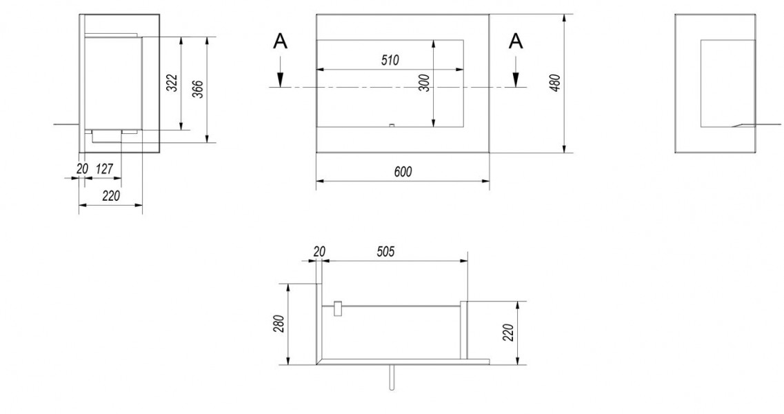 Eck-Biokamin DELTA 600 Ecke links mit TÜV