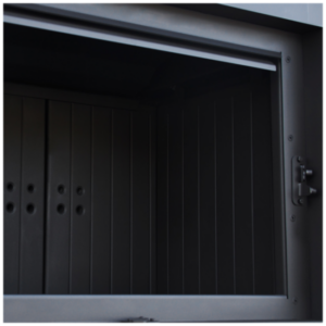 Der Kaminkorpus und die Kaminfront sind aus Hochtemperatur-Kesselstah.