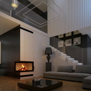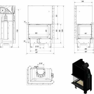Kamineinsatz aus Stahl MBM rechts 10 kW Ø 200 mit Schiebetür gebogenes Glas