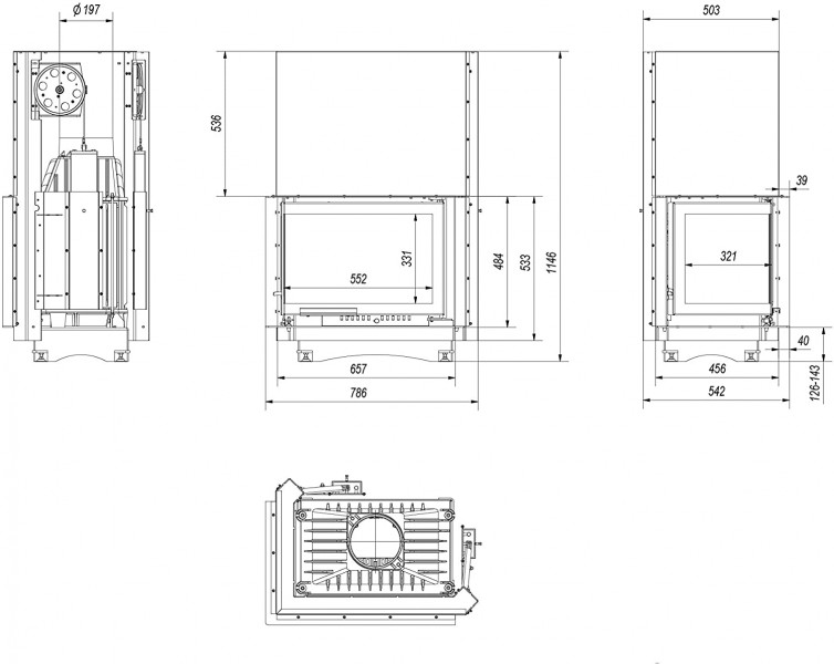 KRATKI Guss Kamineinsatz MAJA 8 kW Seitenscheibe links mit Hebetür/Schiebetür