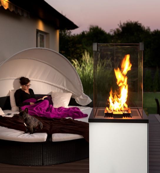 Der Kratki Terassenkamin PATIO – ein modernes Gasheizgerät für den Outdoor-Einsatz.