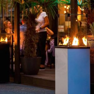 Der PATIO-Gaskamin kann auch perfekt in der Gastronomie und Hotellerie eingesetzt werden. (Für die gewerbliche Abnahme größerer Stückzahlen kontaktieren Sie uns bitte)