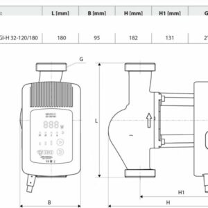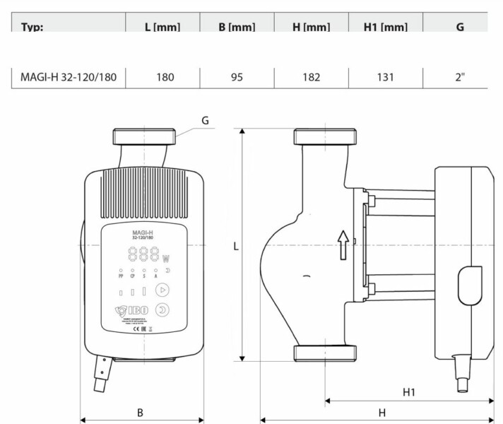 Elektronische Hocheffizienz-Umwälzpumpe IBO MAGI H 32-120/180 (Einbaulänge 180 mm) inkl. Verschraubungen