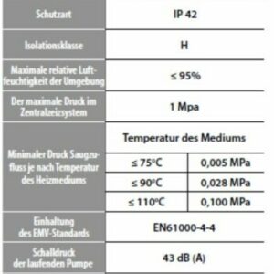 - Umfang der Pumpenflüssigkeit: von 2° C bis 110° C,