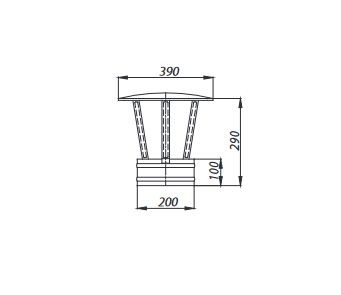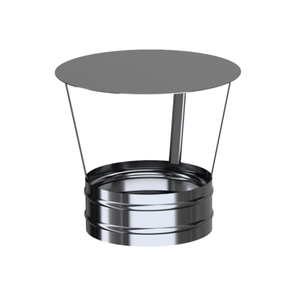 Der Schirm schützt den Schornstein vor Niederschlag.