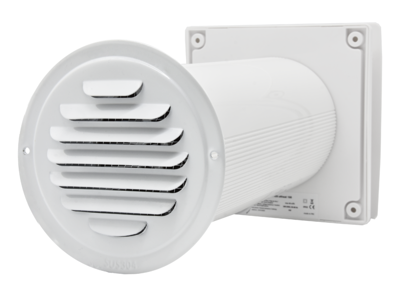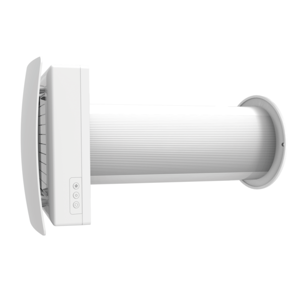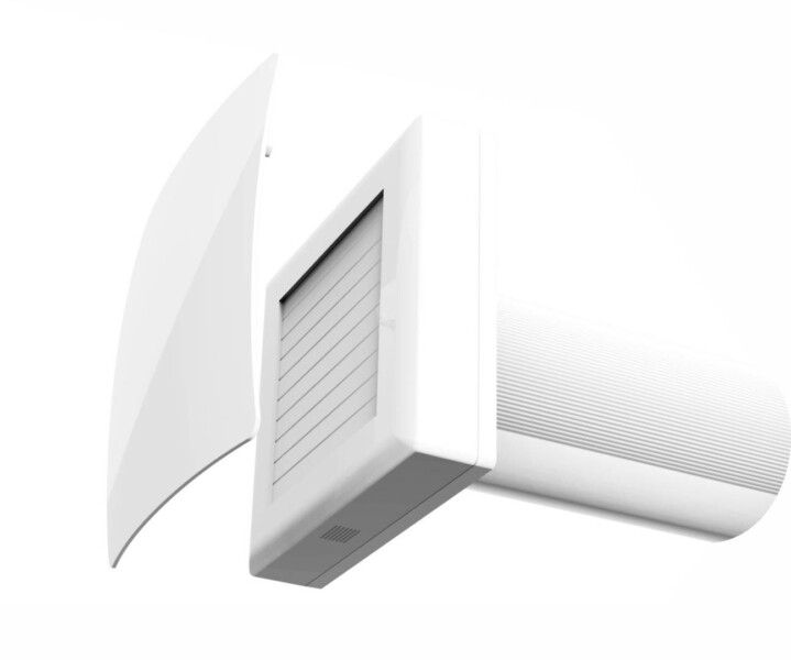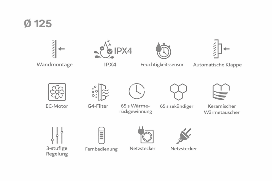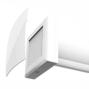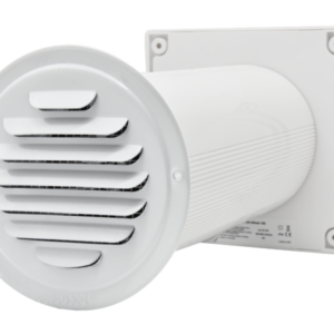 Die Version 125 ist mit einer automatischen Verschlussklappe ausgestattet, die vor dem Rückströmen kalter Außenluft schützt. Auch diese Version wird über ein Netzkabel mit Stecker (90 cm) versorgt und über eine programmierbare Fernbedienung gesteuert.