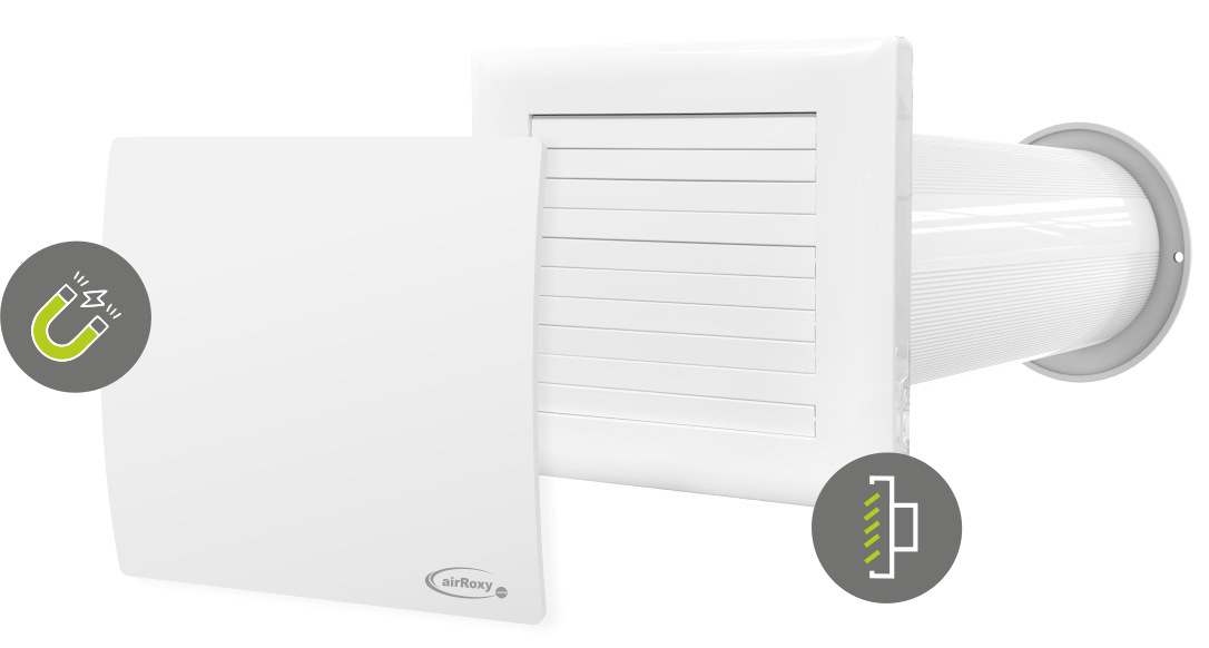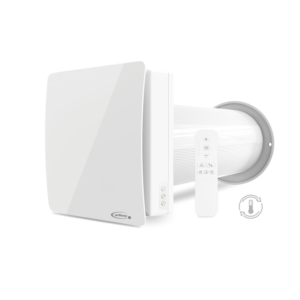 Zusätzlich verfügt das Gerät über einen integrierten Hygrostat, der automatisch auf einen Anstieg der Luftfeuchtigkeit (50 %, 60 %, 70 %) reagiert und die Drehzahl des Ventilators proportional zur Feuchtigkeitszunahme erhöht.