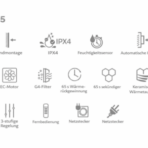 Der Betrieb erfolgt in drei Betriebsarten: Abluftbetrieb, Zuluftbetrieb sowie im 65-sekündigen Wärmeregenerationsmodus.